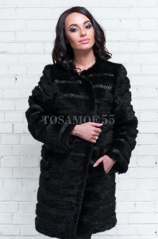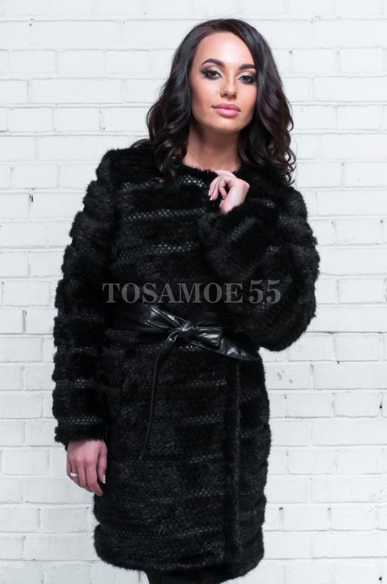 Пальто из норки черного цвета воротник лодочка