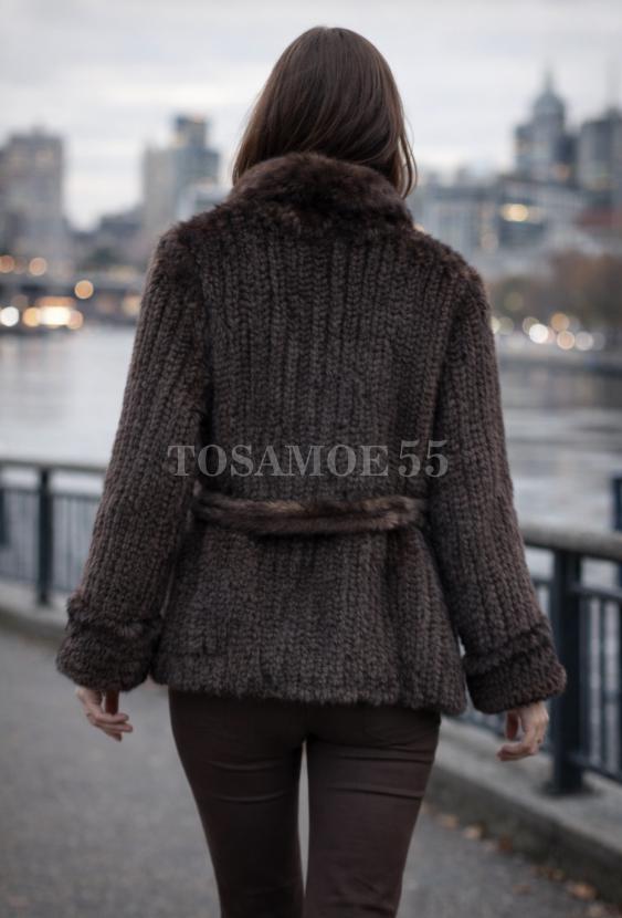 Жакет из вязаной норки с отложным воротником
